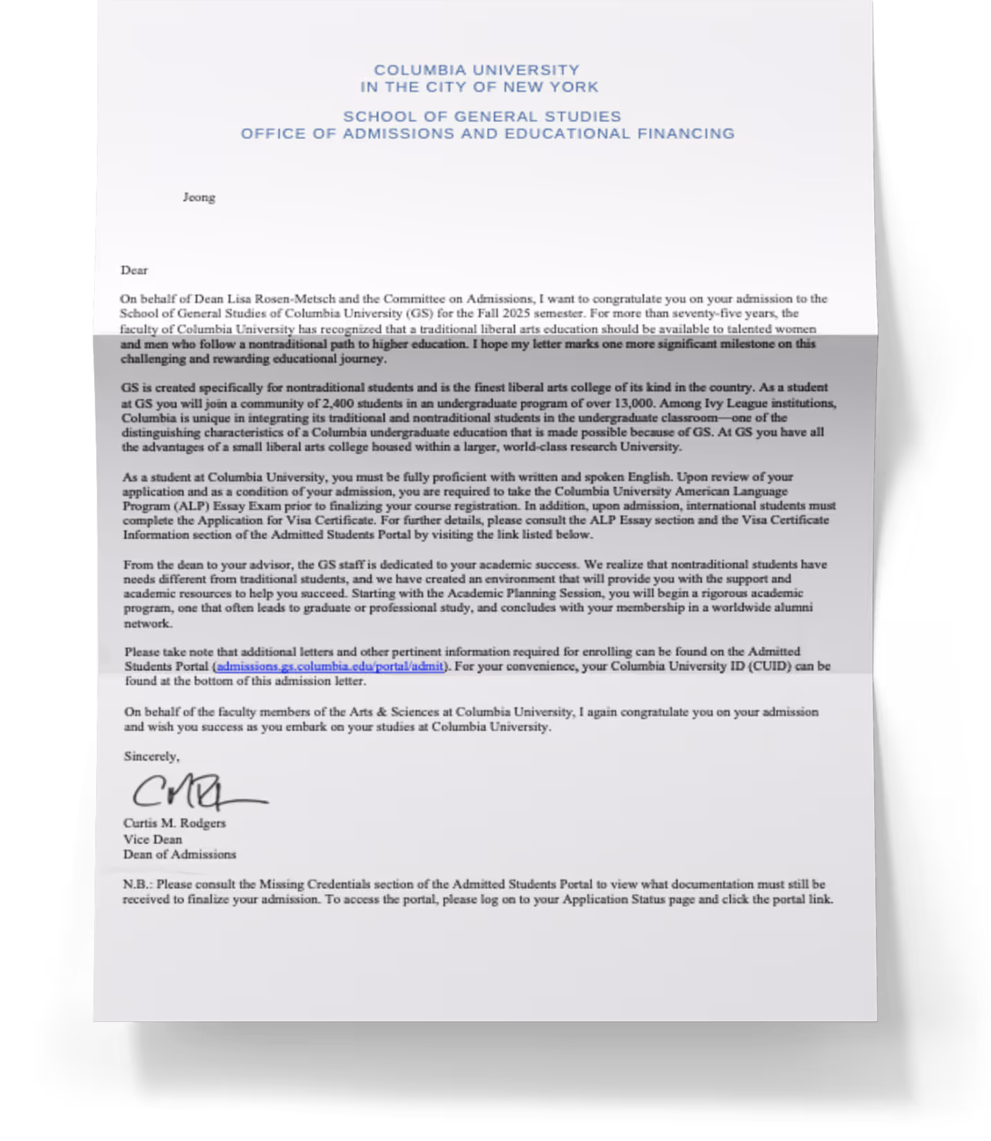 "Getting into Columbia seemed impossible until I started working with Harvest. Their expert advice on essays and extracurriculars helped me stand out".
